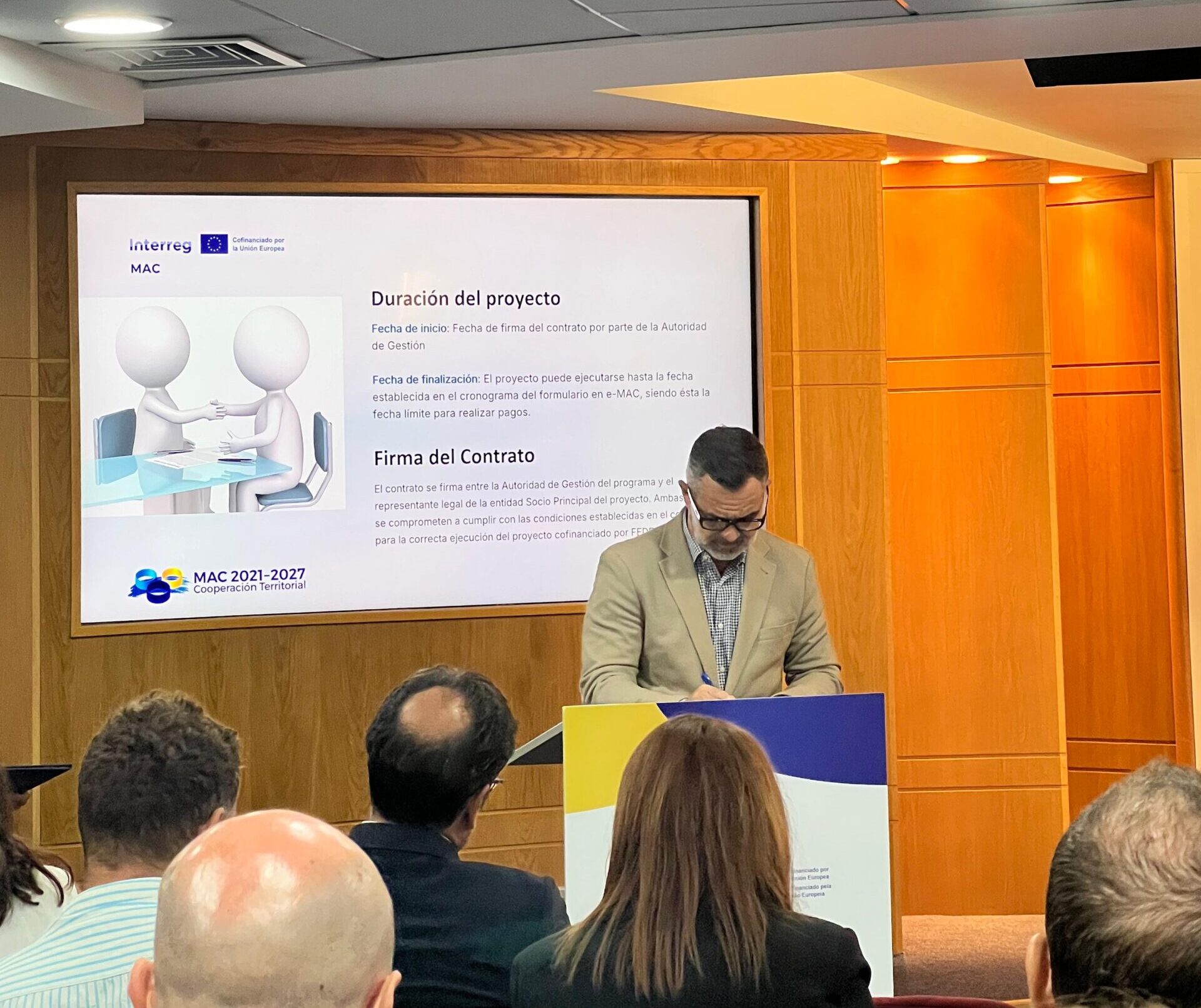 El evento contó con una sesión informativa sobre los objetivos generales del programa INTERREG MAC 2021–2027, seguida de paneles de discusión en los que se abordaron los retos y oportunidades que afrontan los territorios atlánticos en materia de sostenibilidad, desarrollo económico e integración regional.